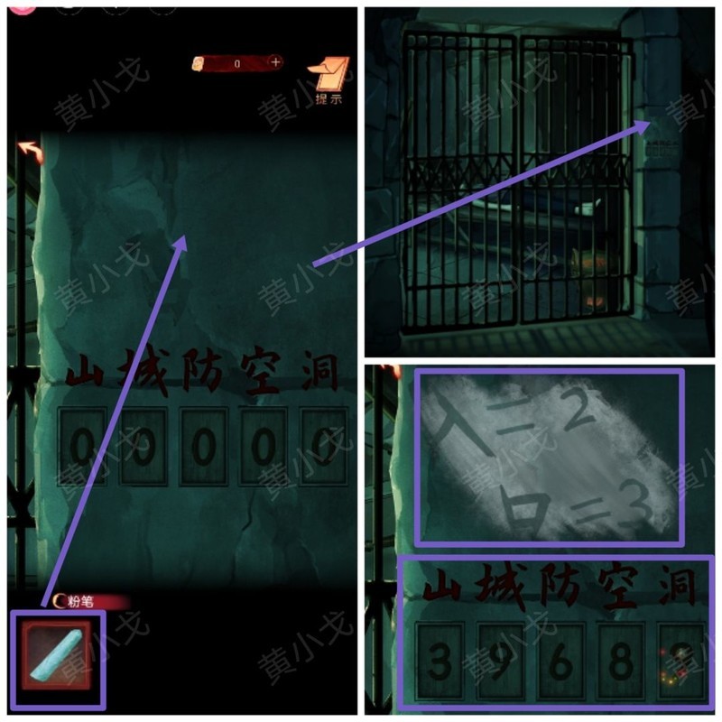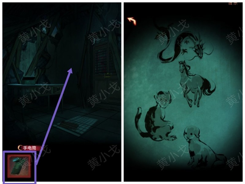 用钥匙打开药店的门。按下顶部按钮,用粉笔写字获取线索,戌狗。