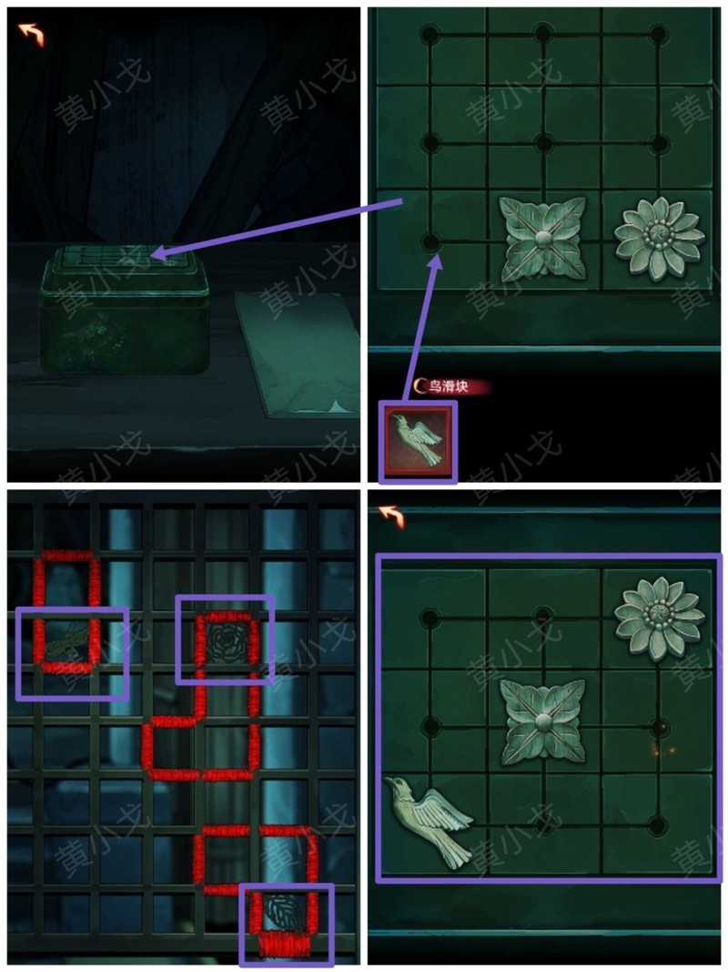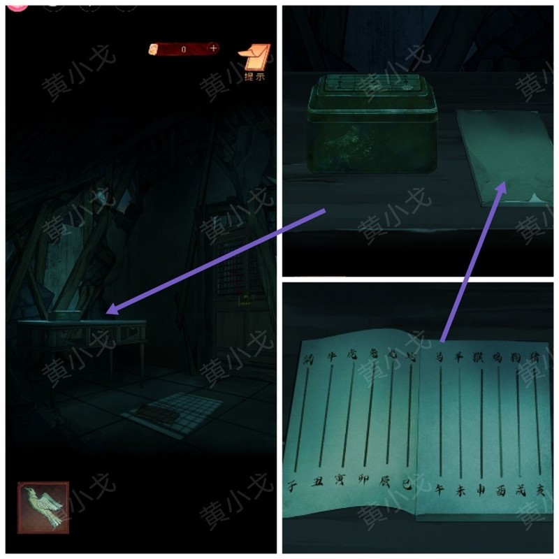 点击拾取桌上的碗。树叶和花的位置调整滑块。输入密码2637。常山、钩藤、开启门。获取。薄荷、到婚房、6、申猴、从老房间的机关解密,获取相关线索信息。苦参、