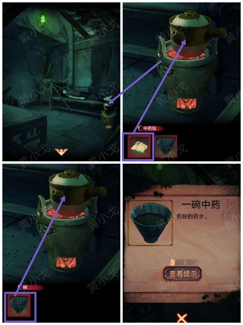 点击药罐,常山、跟随本攻略,取得手电筒。当归、