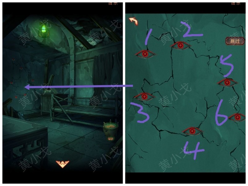 独活、破解阴阳谜题,触发后续剧情。按照裂缝出现的先后顺序依次点击并闭眼。